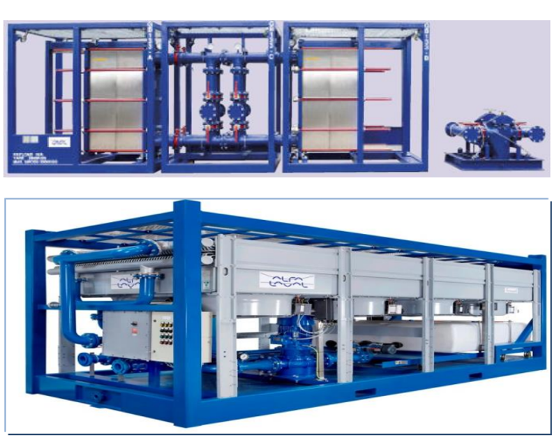 We provide an efficient, modular mud cooling system for use in all kinds of offshore drilling rigs that do not have access to sufficient quantities of cooling water.